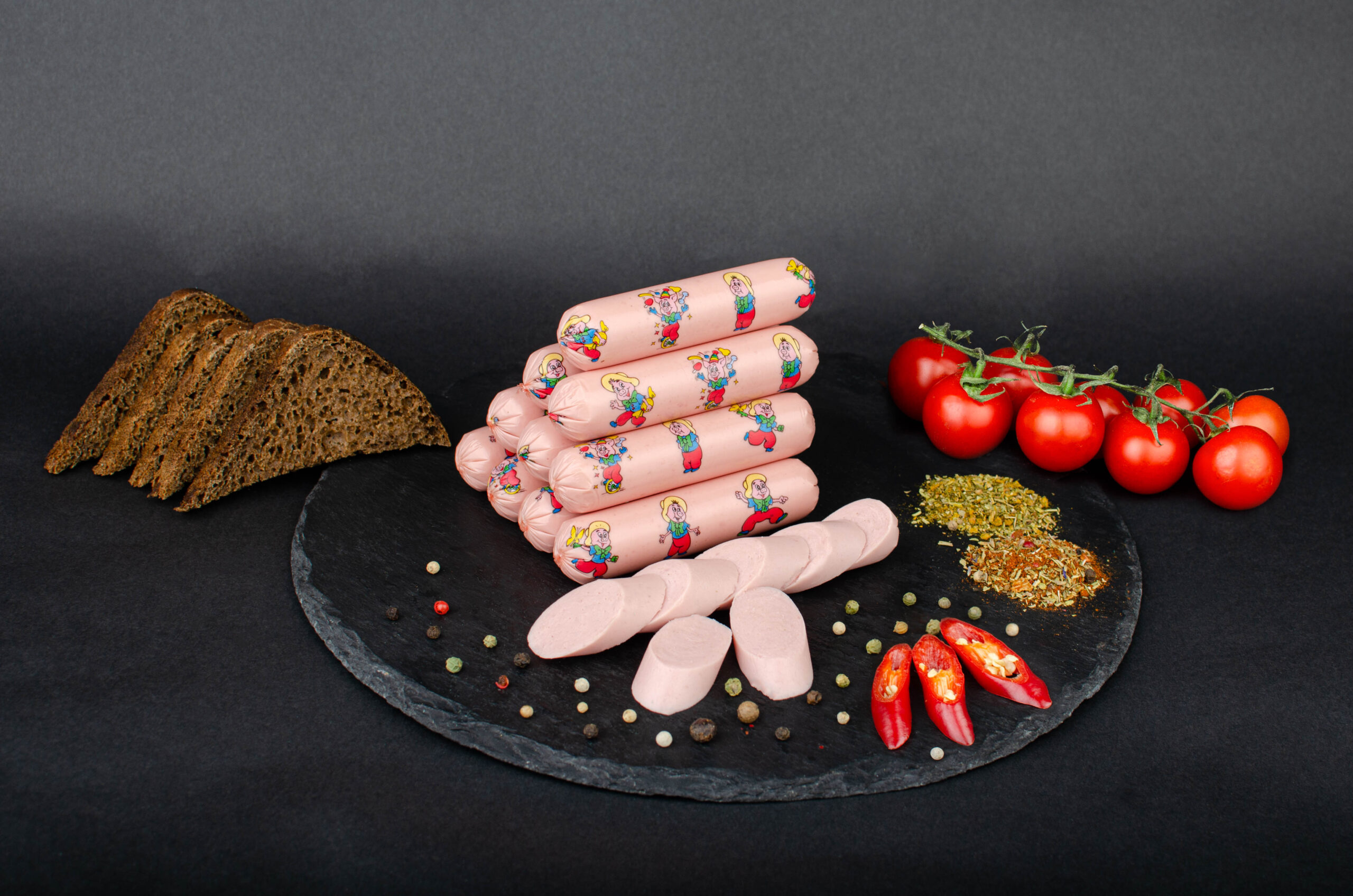 Свинина знежилована напівжирна, сало свиняче бокове, яловичина знежилована першого сорту, суміш спецій та прянощів.